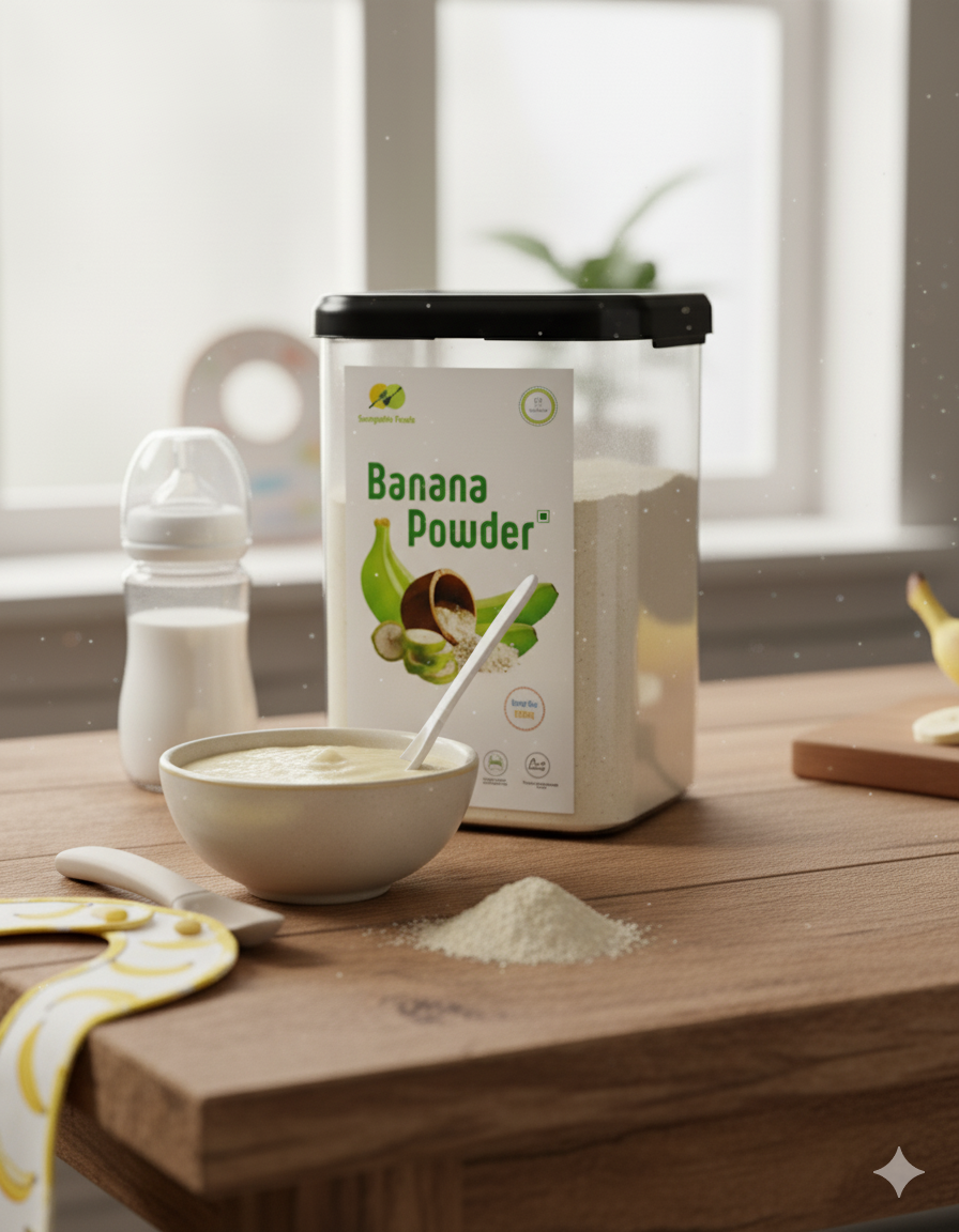 Give your little one the best start with Sangeetha Foods Banana Powder, made from 100% natural, sun-ripened Cavendish bananas. Specially prepared under hygienic conditions, it’s a gentle, nutrient-rich food perfect for growing babies.