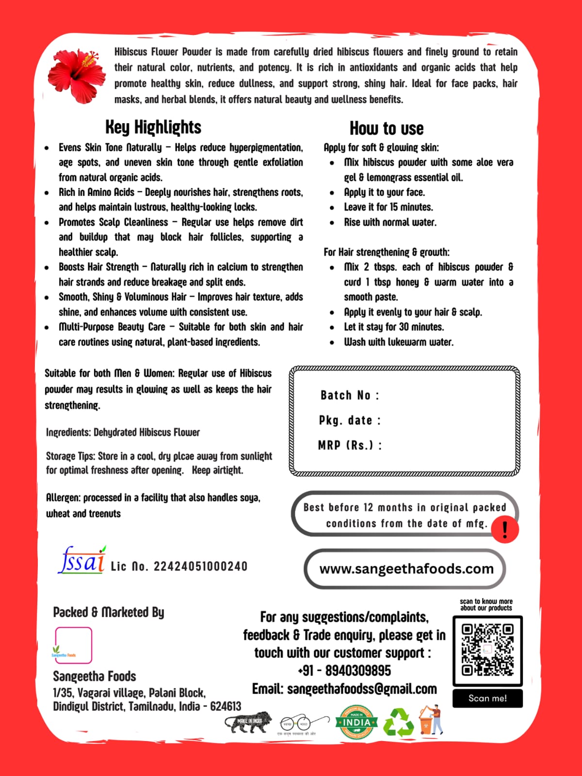 3. Pure Hibiscus Flower Powder (The Growth Booster)