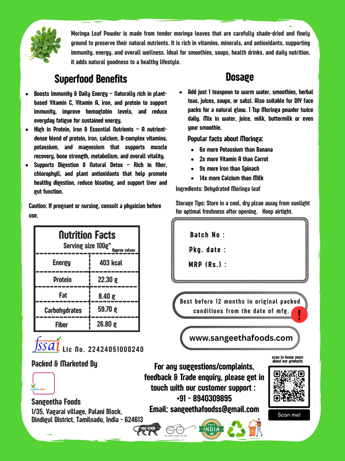 Certification: FSSAI Licensed (No. 22424051000240).